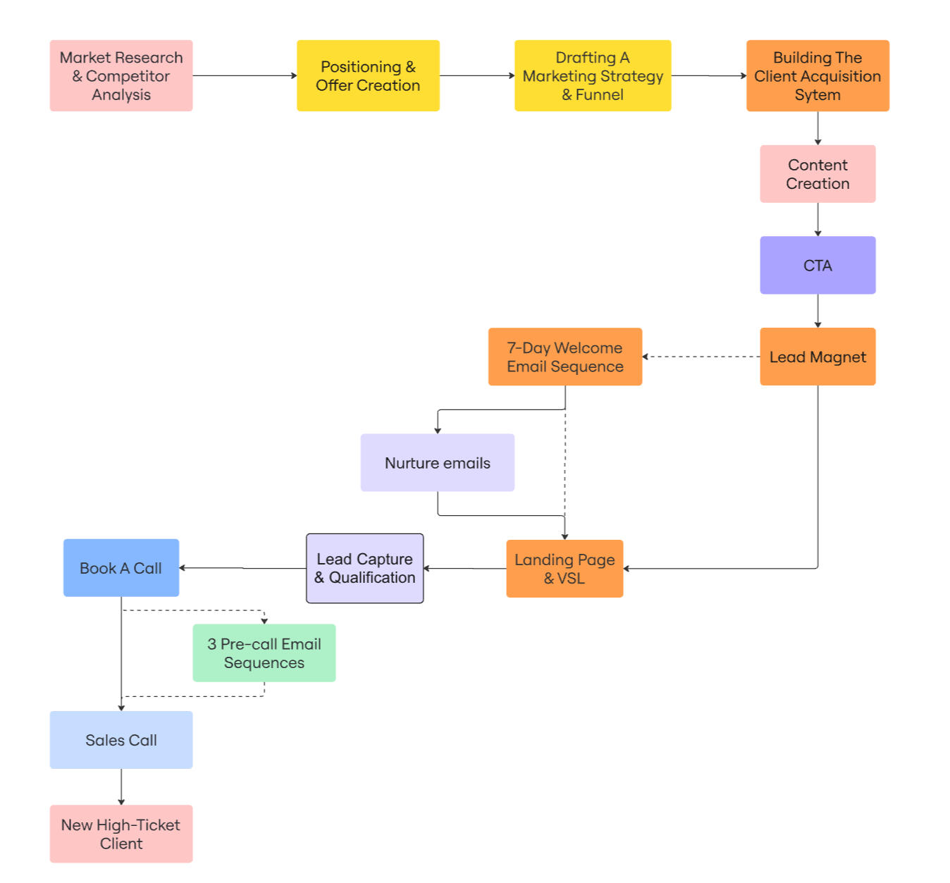 Set it up once, and let it run on autopilot. No more burnout, no more DM marathons.Unlike closing clients on DMs that's sucking your soul and makes you feel burnout all day every day.After setting up The High-Ticket Client Acquisition System, all you have to do is wake up, hop on a call with qualified clients who are ready to buy, get paid, and enjoy your day without chasing broke leads ever again.